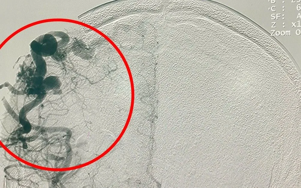Bệnh nhân H.Đ.T. (35 tuổi, Quảng Trị) vào viện trong tình trạng hôn mê sâu, đồng tử giãn, nguy cơ tử vong cận kề. Chẩn đoán ban đầu cho thấy xuất huyết não nặng, nghi do dị dạng mạch máu não (AVM) vỡ.